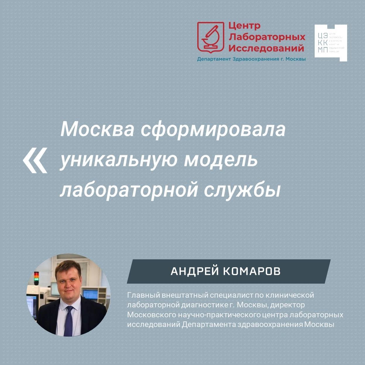 Об особенностях этой уникальной модели в нашей рубрике #ЭффективноеЗдравоохранениеРегионов рассказывает Андрей Комаров, главный внештатный специалист по клинической лабораторной диагностике г. Москвы, директор Московского научно-практического центра лабораторных исследований Департамента здравоохранения Москвы