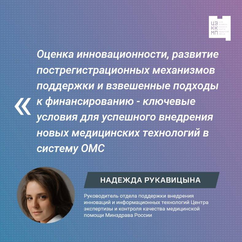Надежда Рукавицына, руководитель отдела поддержки внедрения инноваций и информационных технологий Центра экспертизы и контроля качества медицинской помощи Минздрава России, о вызовах интеграции инноваций в практическое здравоохранение на Форуме пациенториентированных инноваций: