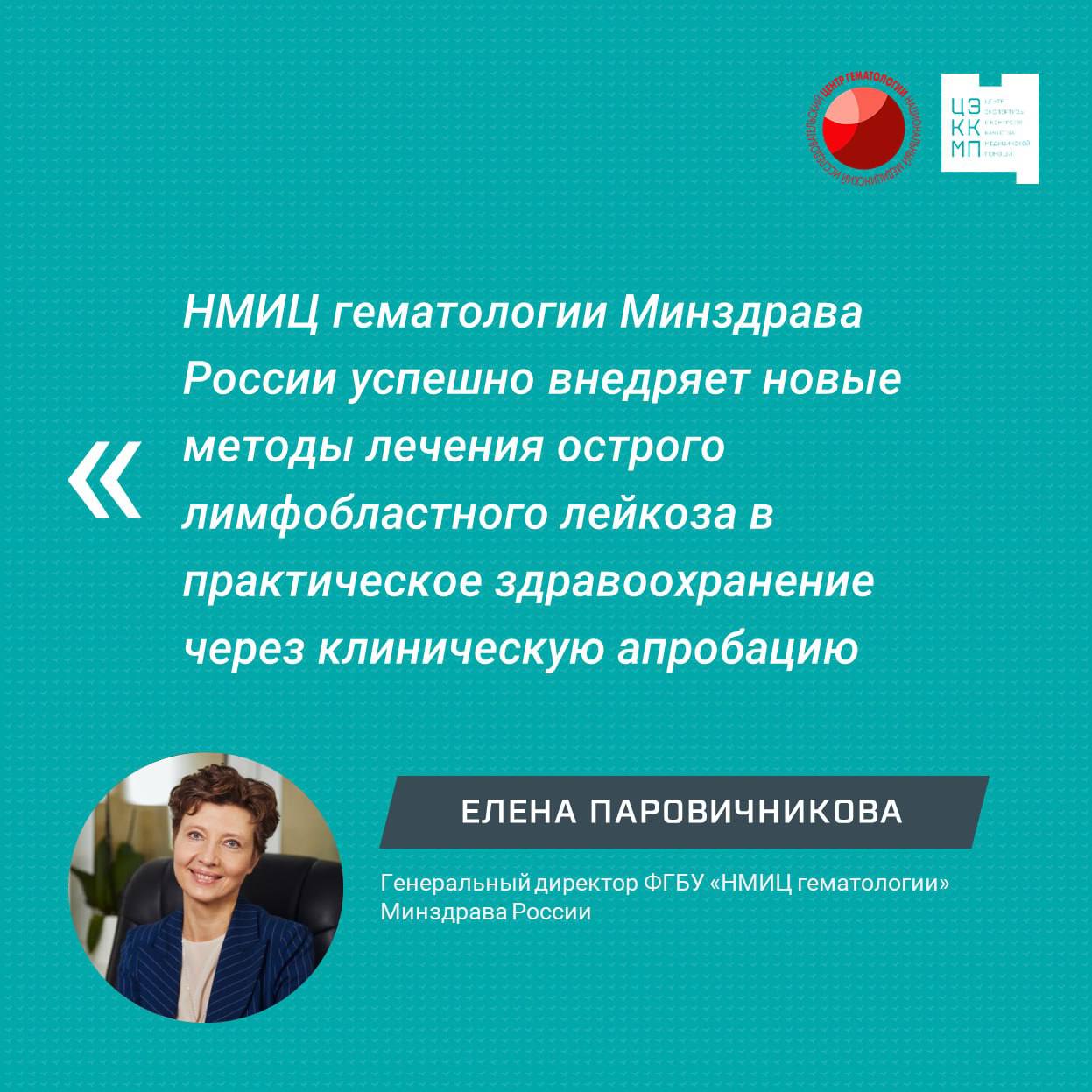 Елена Паровичникова, генеральный директор ФГБУ «НМИЦ гематологии» Минздрава России: